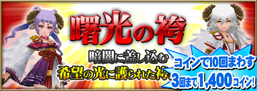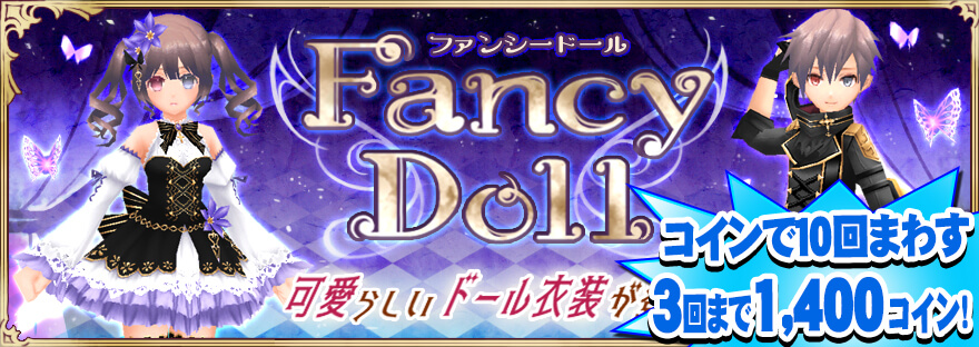・「雪花の和装束」「ファンシードール」などが3回目まで10連1,400コインの半額セール開催!