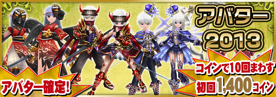 ・2018年、2017年、2016年、2015年、2014年、2013年のアバターが勢揃い!初回10連1,400コインの半額セール!