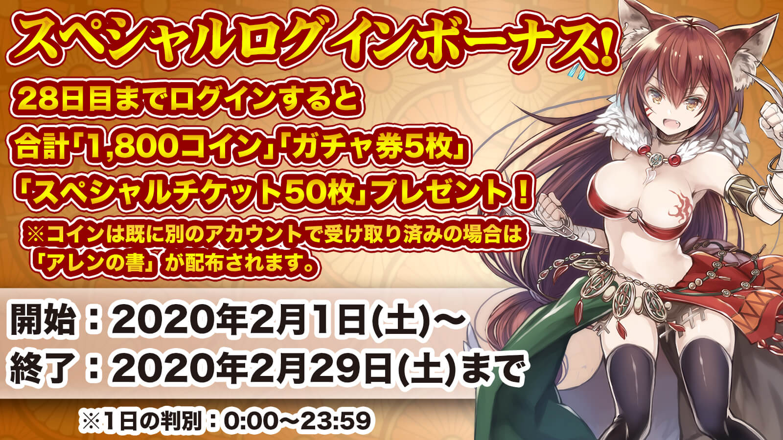2020年2月1日(土)0:00より、スペシャル累積ログインボーナスを開催中です!
