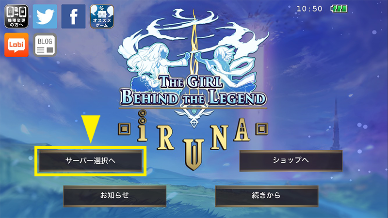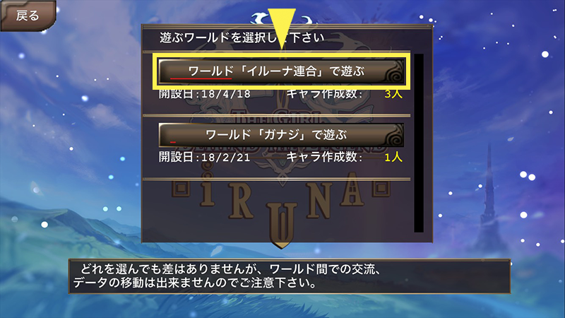 4.「ワールドイルーナ連合で遊ぶ」を選択するとログインできます。