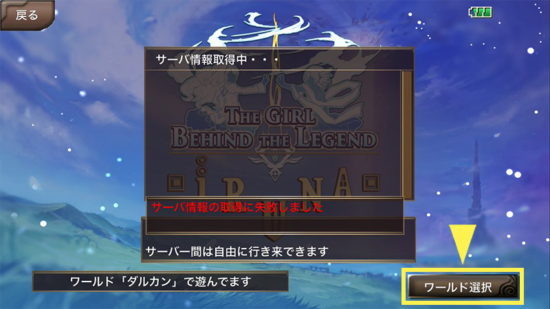 4月18日(水)メンテナンス開始時にワールド選択で「ミスルナ」「ダルカン」を選択中だった方は、次の操作をお試しください。