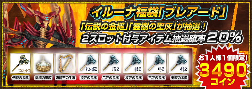 -「体装備超開放」「伝説の金槌抽選」「特殊装備超開放」