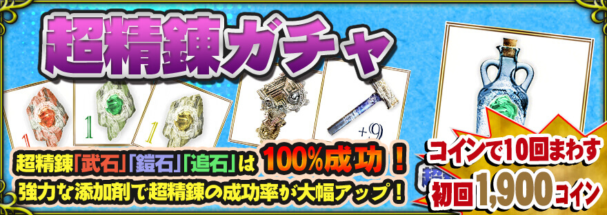 -「超精錬ガチャ」「ペットガチャ」「トランスガチャ」