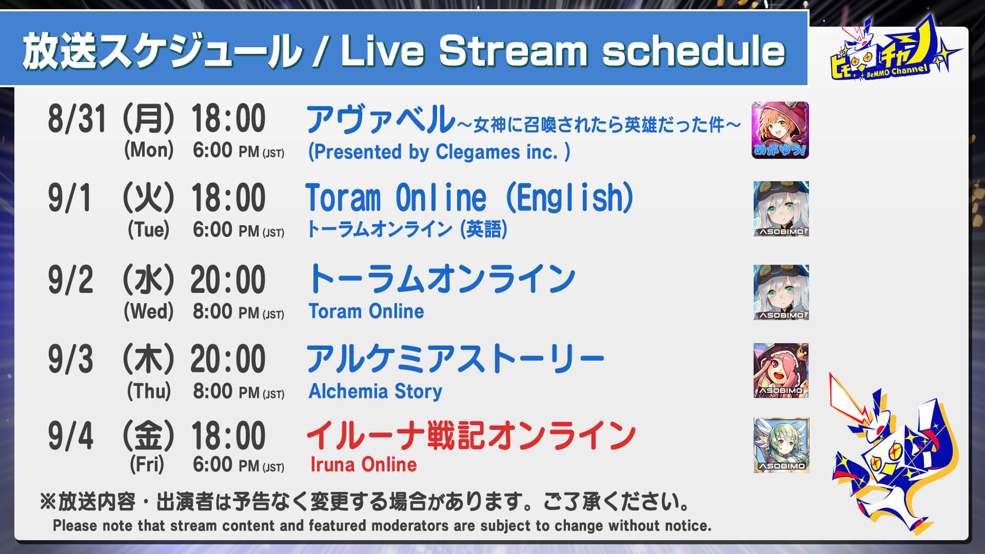 9月より毎週金曜日にイルーナ戦記オンラインの生放送を実施します。