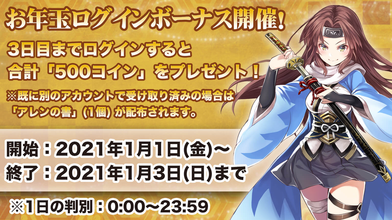 2021年1月1日(金)0:00より、お年玉の「コイン」が貰える特別ログインボーナスを開催致します!